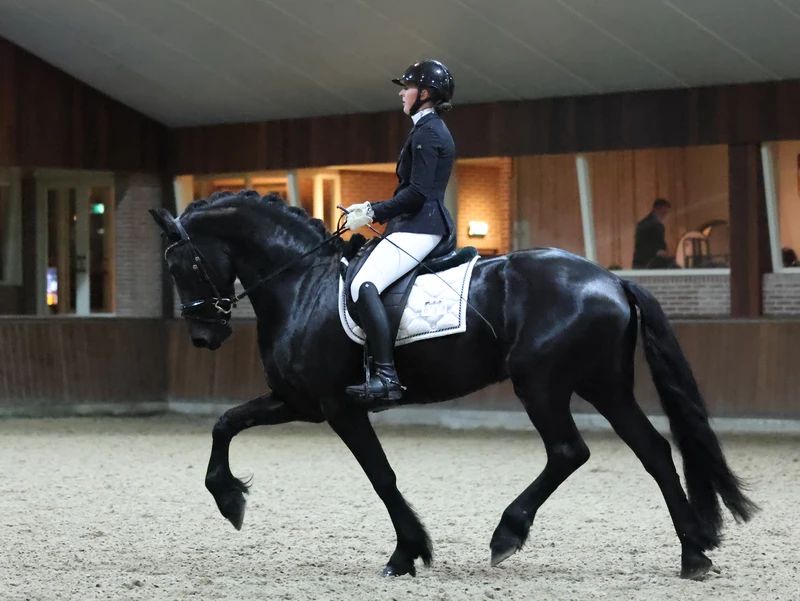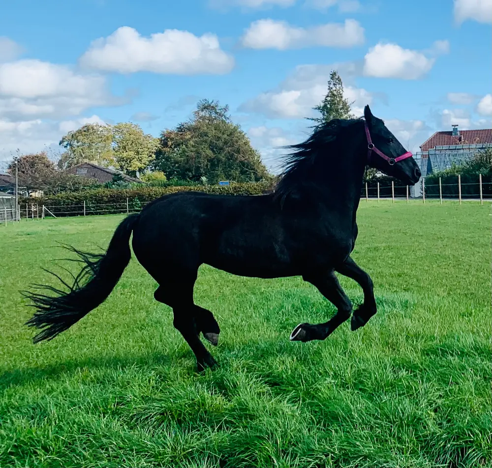Eigenlijk heet ze Jildou Vemke. Ze is net als Tirza een KFPS Friese merrie. Ze is geboren in 2011 en officieel opgenomen in het KFPS stamboek. We hebben haar gekocht in 2021 omdat we een tweede ervaren paard voor de koets zochten. Vemke heeft veel ervaring voor de koets opgedaan en zij loopt links in het span. Vemke is een harde werker en geeft altijd alles. Samen met Tirza vormt zij een prachtig koppel voor de koets.