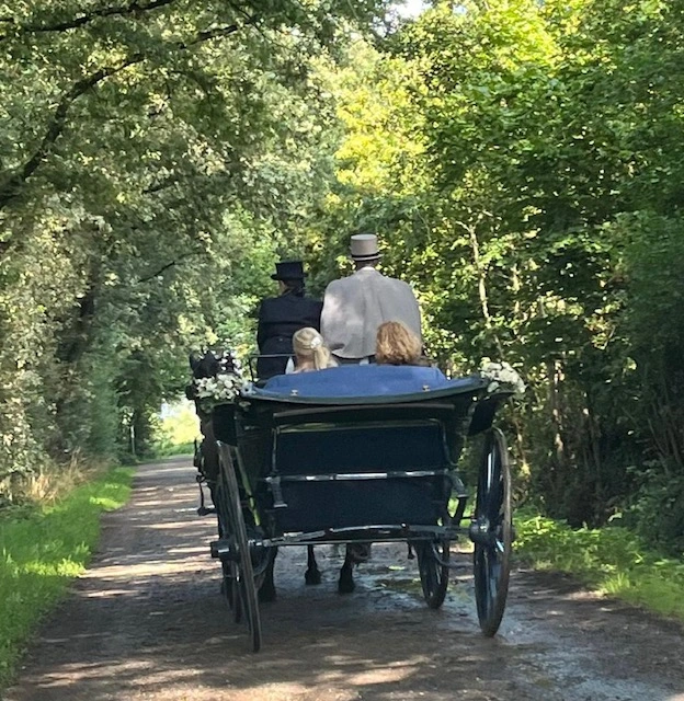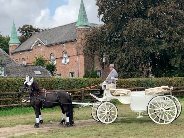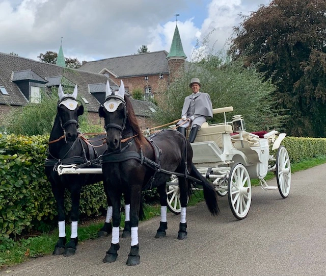 Wij brengen het bruidspaar naar de trouwlocatie of van de trouwlocatie naar de feestlocatie met een door het bruidspaar geselecteerde koets. In dit arrangement houden wij rekening met een tijdsbestek van maximaal twee uur.
